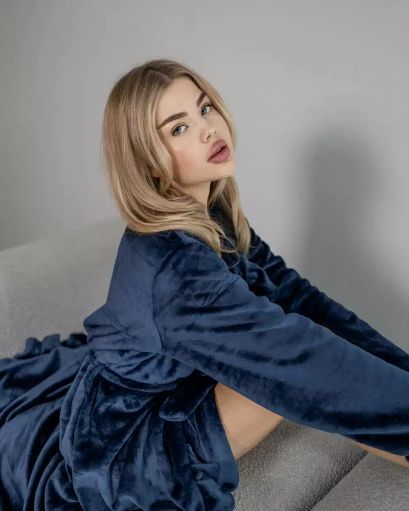 Халат із якісної плюшевої махри, дуже приємний та мякий, не викликає подразнень на тілі. Ви зможете загорнутися в нього прохолодним ранком або відразу ж після ванни, щоб зберегти тепло. Халат просто незамінний для дому, якщо ви хочете відчувати комфорт. Він прекрашений рюшами на рукавах та по краю всього виробу. -Тканина екологічна, гіпоаллергена, приємна на дотик, придатна для повсякденного носіння; -Халат на запах, з кишенями, є пояс; -Зручний крій, що не сковує рухів; -Не деформується, не линяє, не кашлатиться.