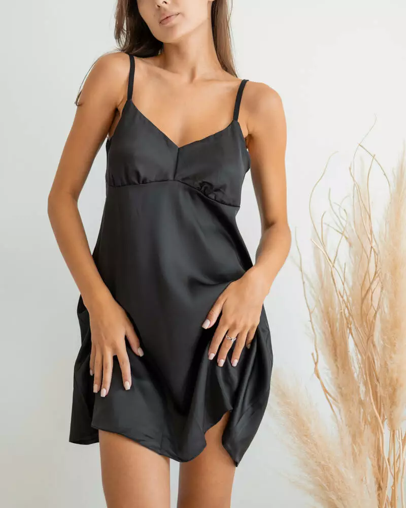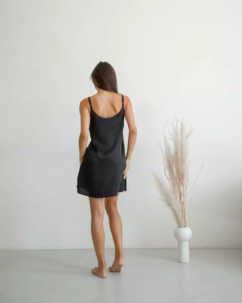 Нічна сорочка виконана з шовкової тканини Armani. Модель представлена в довжині міні, бретелі регулюються. Нічна сорочка чудово підкреслює жіночу фігуру і може поєднуватися з халатом.
