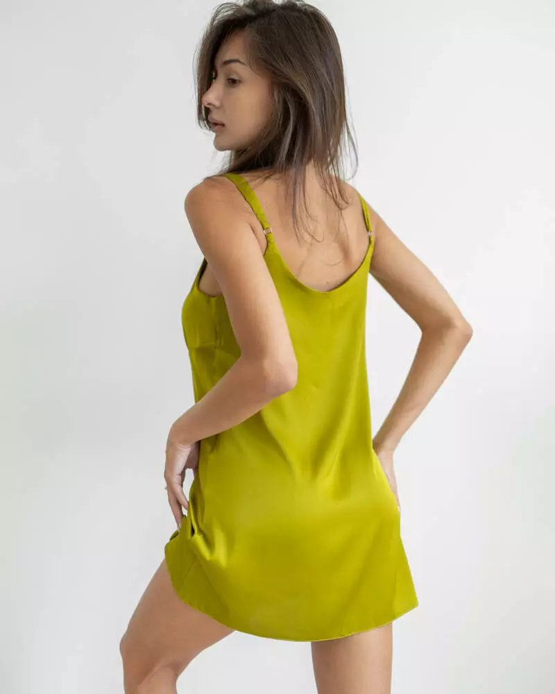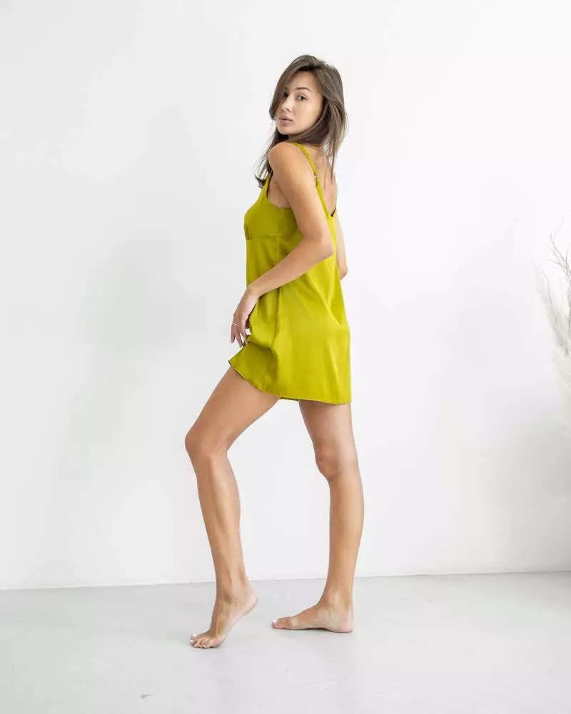 Нічна сорочка виконана з шовкової тканини Armani. Модель представлена в довжині міні, бретелі регулюються. Нічна сорочка чудово підкреслює жіночу фігуру і може поєднуватися з халатом.
