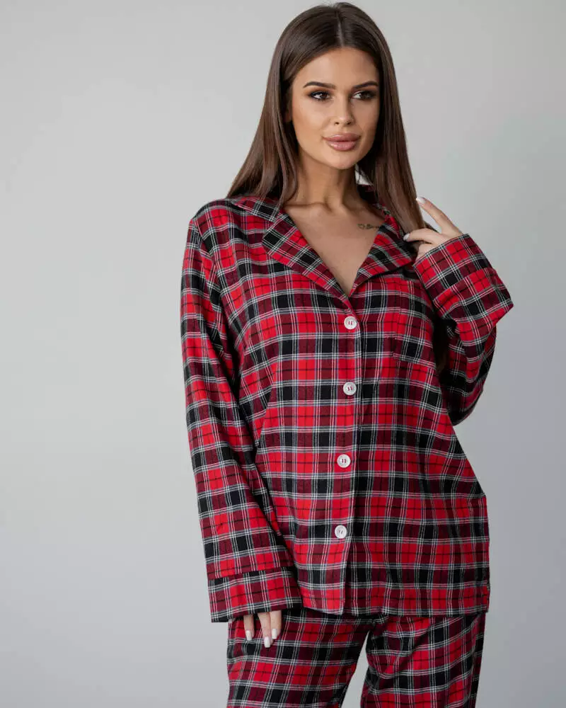 Піжамний костюм у клітинку з якісної турецької тканини байка. Комплект: зручна сорочка на ґудзиках з коміром, штани прямого крою з кишенями на резинці. Тканина байка преміум класу, м'яка, приємна на дотик, не кашлатиться. Піжама ідеально підійде для холодів для дому та сну.