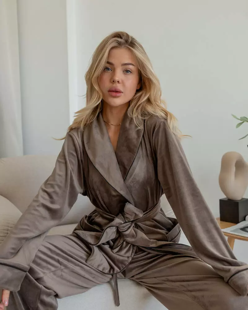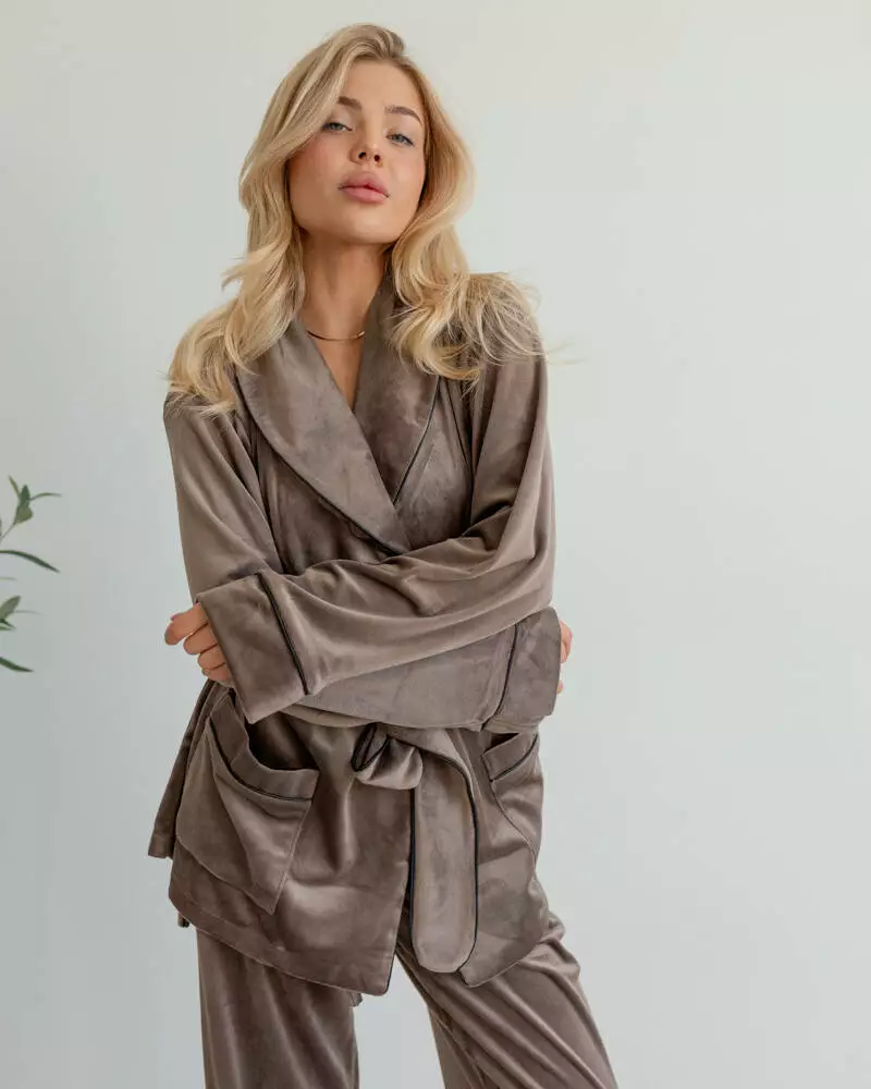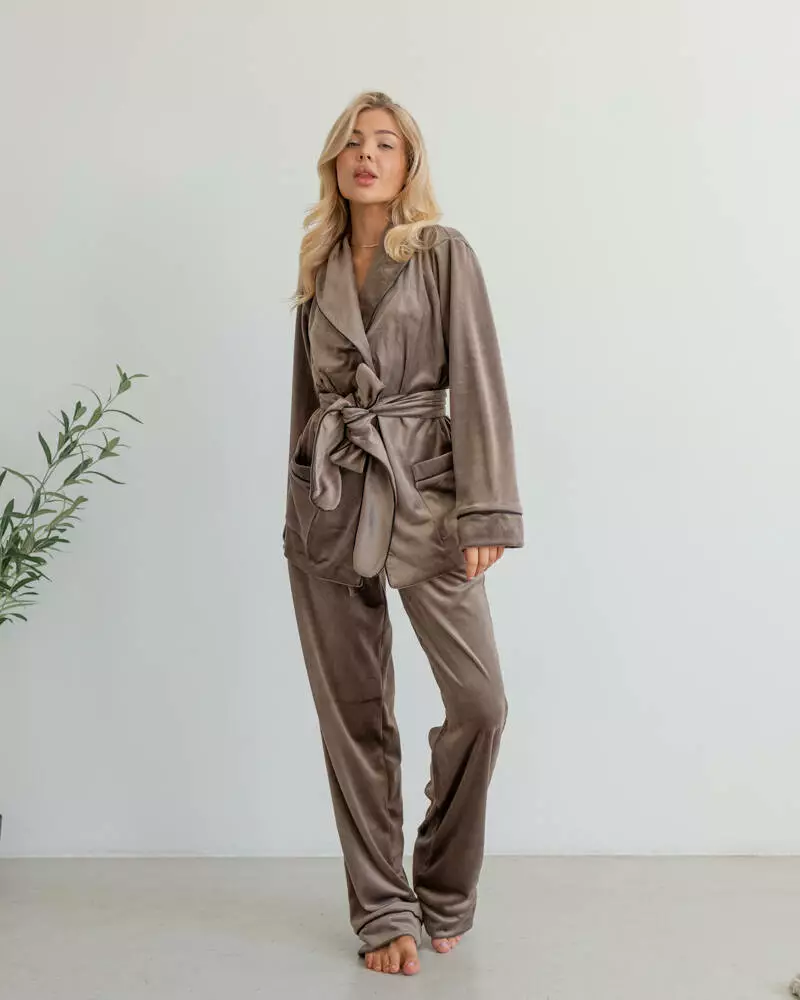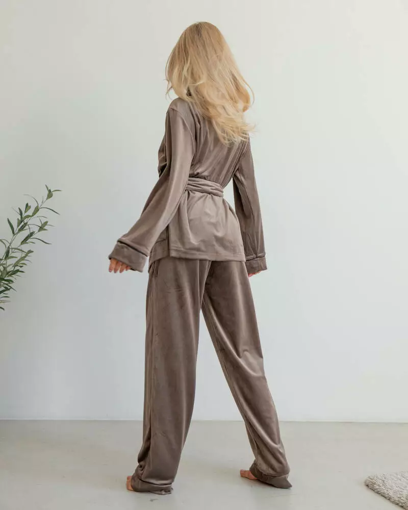 Піжама на запах велюр "Eva" Коричневий
