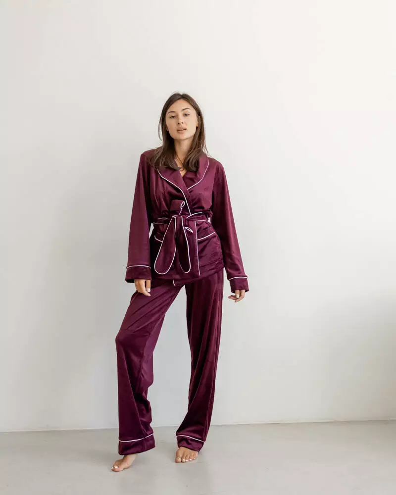 Піжама на запах велюр "Eva" Марсала