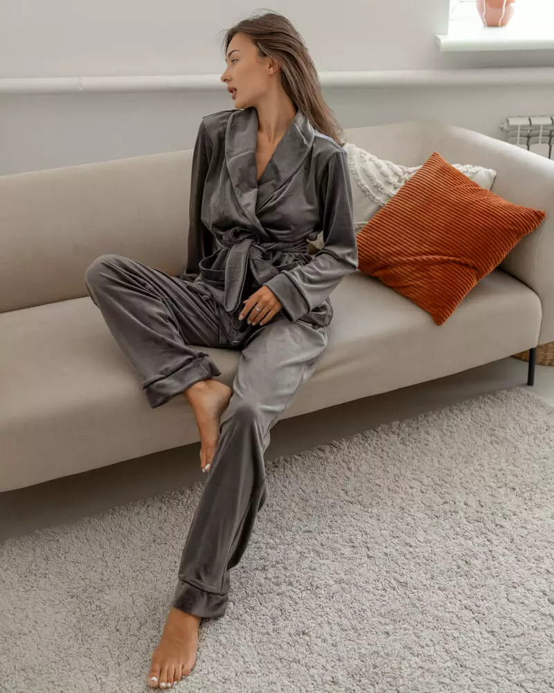 Піжама на запах велюр "Eva" Сірий