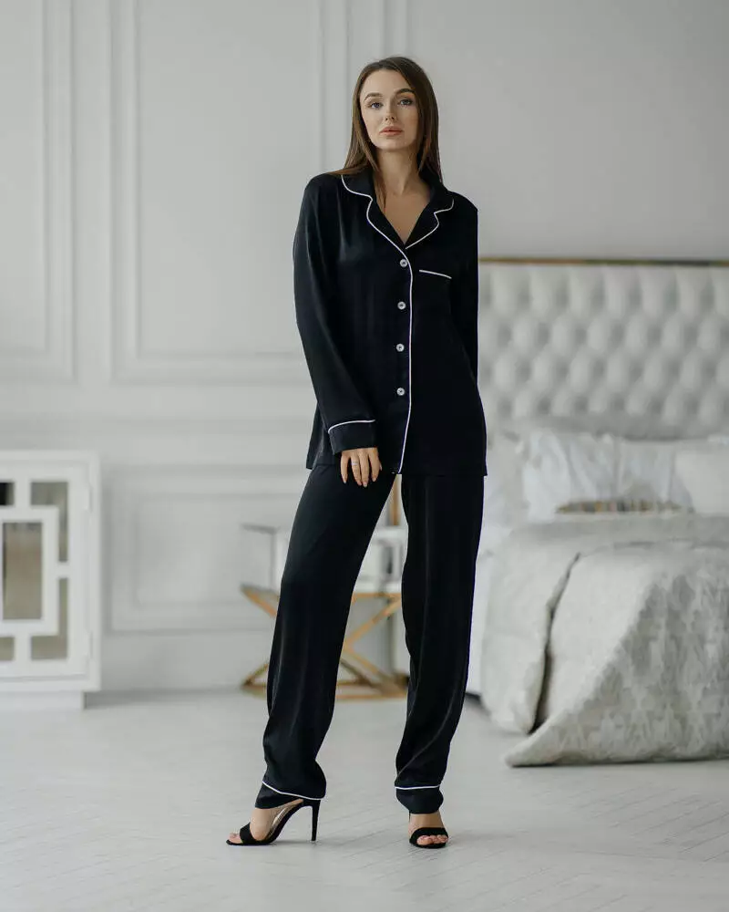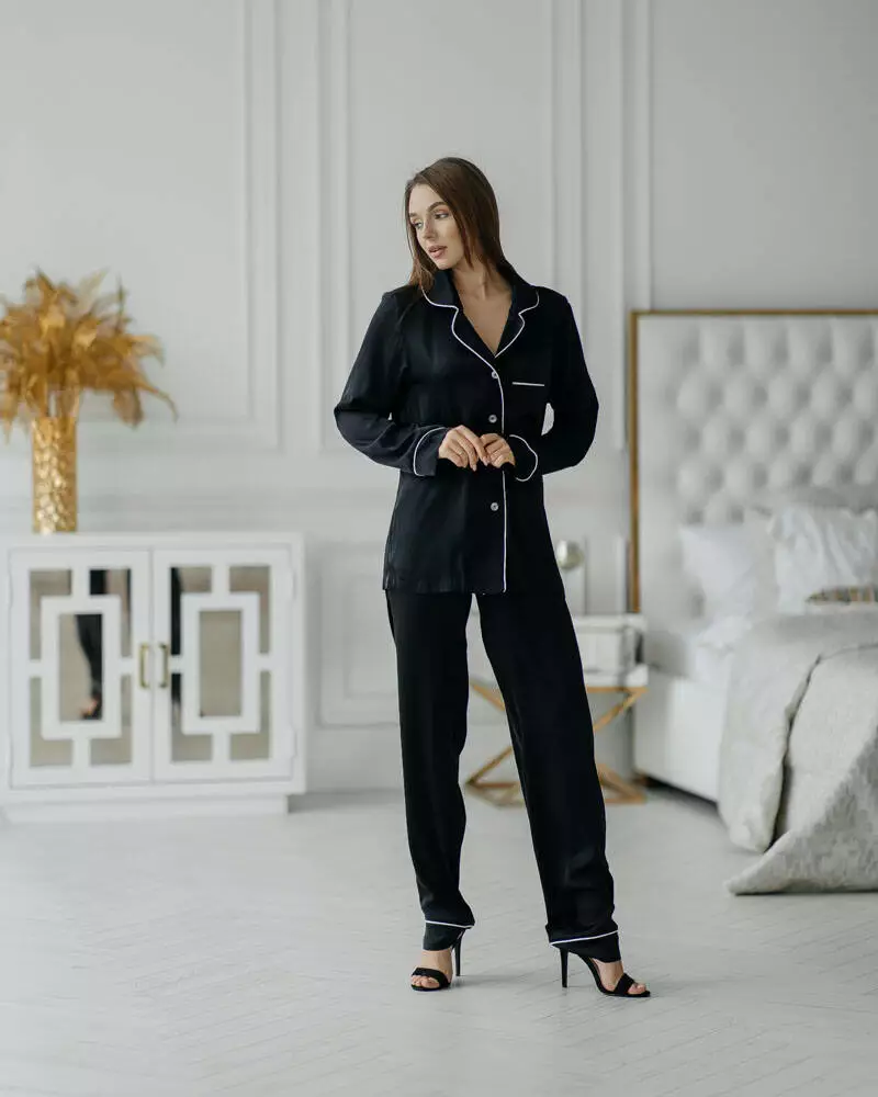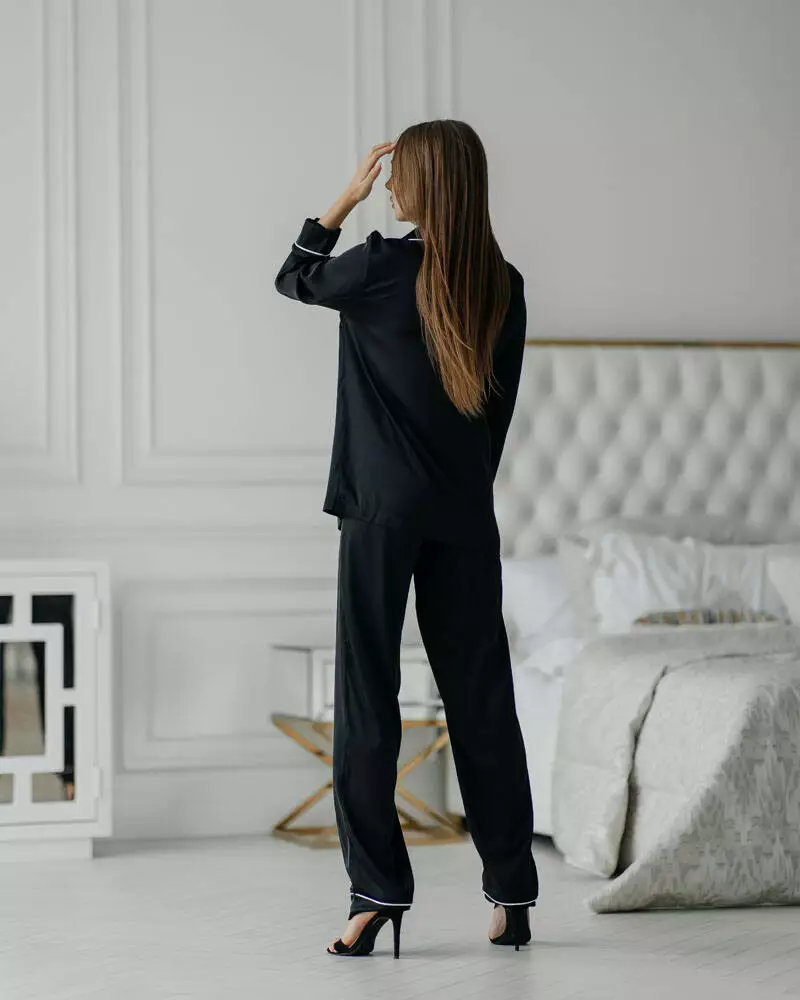 Жіноча піжама з шовкової тканини Armani. Комплект складається з довгої сорочки з кишенею на грудях та штанів вільного крою на резинці. Жіночий костюм ідеально підходить для сну та домашніх справ. Тканина майже не мнеться, добре пропускає повітря і не втрачає колір при пранні. Увага, піжама розміру XL на замовлення: пошиття такої краси займе 2-3 дні