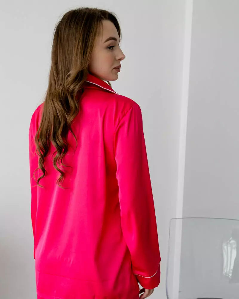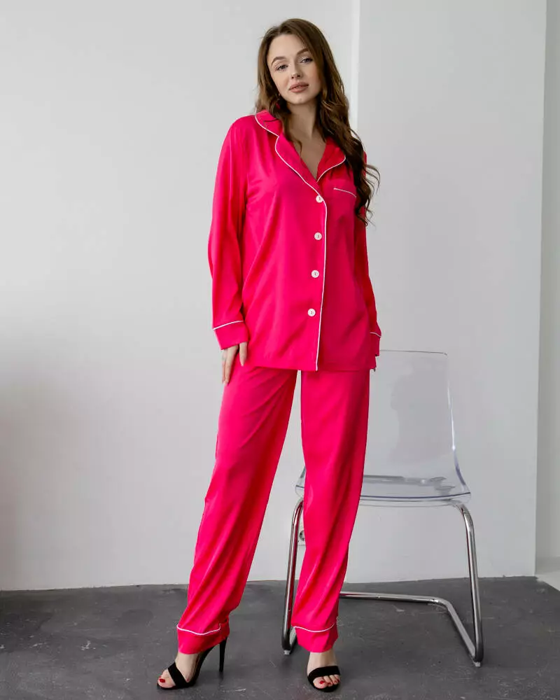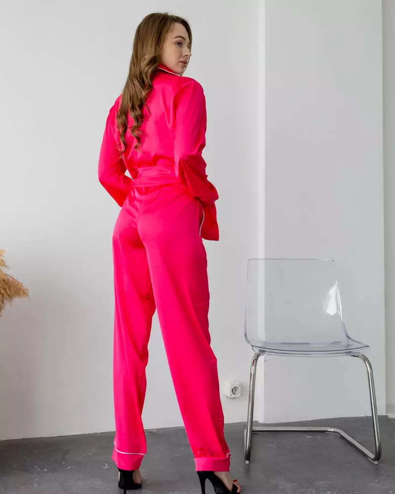 Жіноча піжама з шовкової тканини Armani. Комплект складається з довгої сорочки з кишенею на грудях та штанів вільного крою на резинці. Жіночий костюм ідеально підходить для сну та домашніх справ. Тканина майже не мнеться, добре пропускає повітря і не втрачає колір при пранні. Увага, піжама розміру XL на замовлення: пошиття такої краси займе 2-3 дні