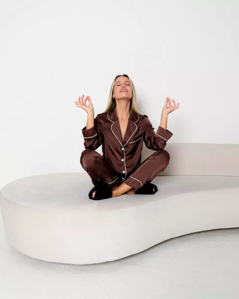 Жіноча піжама з шовкової тканини Armani. Комплект складається з довгої сорочки з кишенею на грудях та штанів вільного крою на резинці. Жіночий костюм ідеально підходить для сну та домашніх справ. Тканина майже не мнеться, добре пропускає повітря і не втрачає колір при пранні. Увага, піжама розміру XL на замовлення: пошиття такої краси займе 2-3 дні