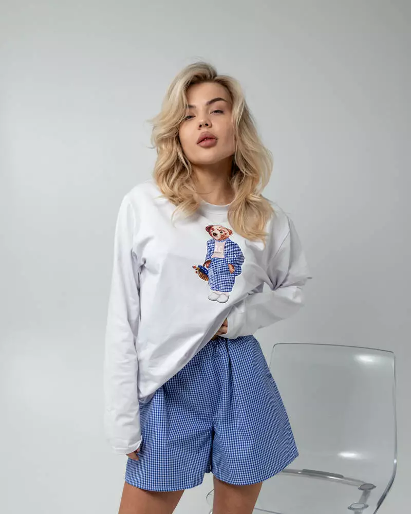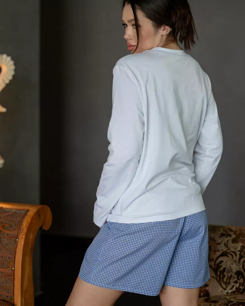 Жіноча піжама із натуральних матералів: бавовни та віскози. Комплект: тоненький лонгслів вільного крою та короткі шорти на резинці з кишенями. У такій піжамі Вам буде по-справжньому затишно та комфортно, зручна для сну.