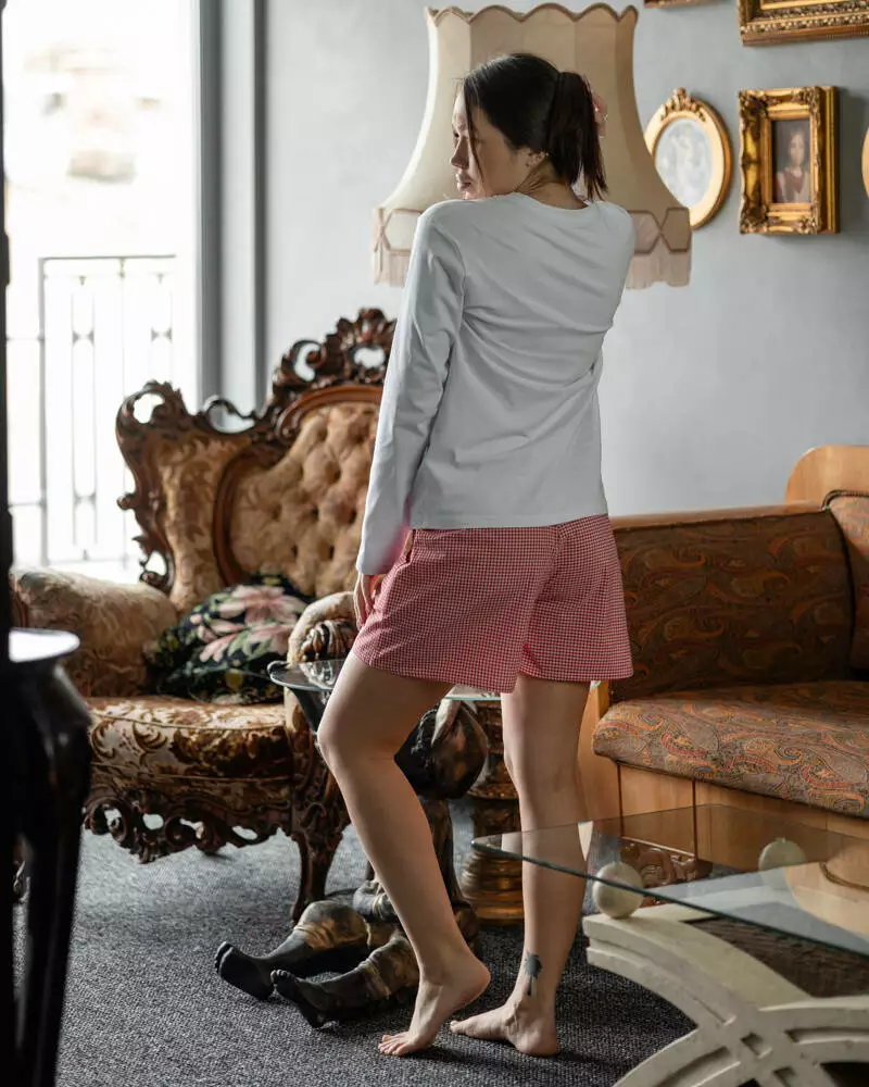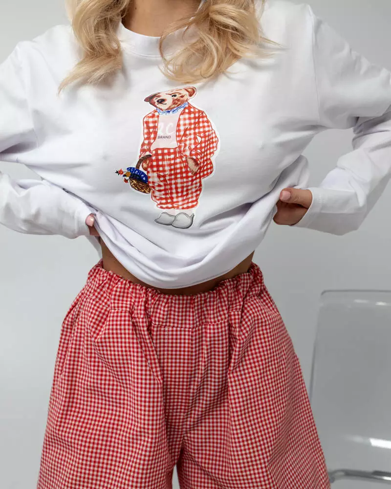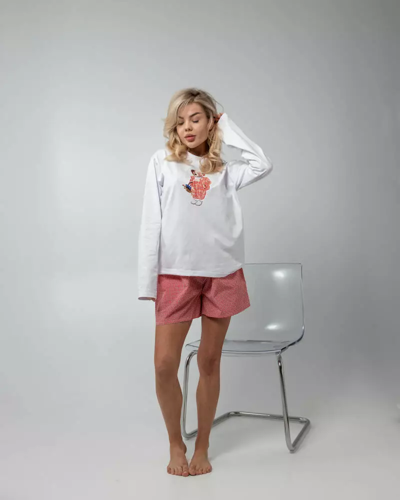 Жіноча піжама із натуральних матералів: бавовни та віскози. Комплект: тоненький лонгслів вільного крою та короткі шорти на резинці з кишенями. У такій піжамі Вам буде по-справжньому затишно та комфортно, зручна для сну.