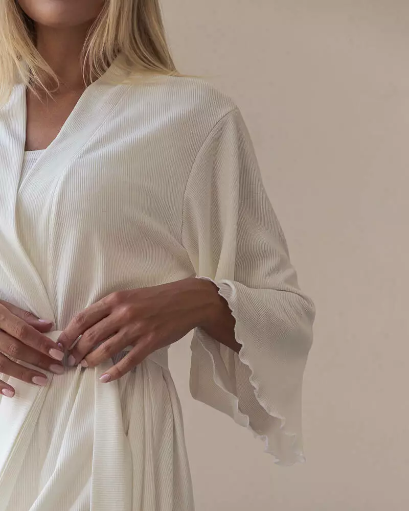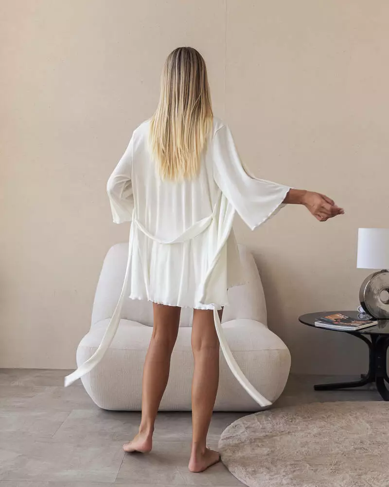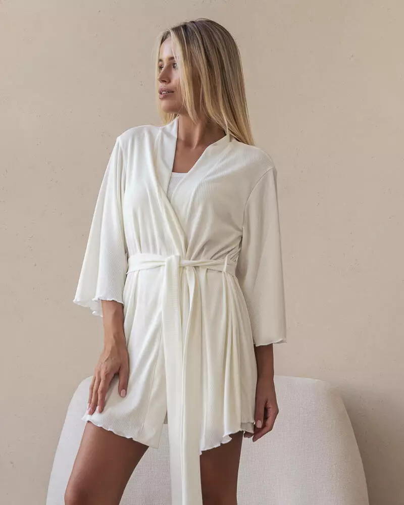 Піжамний костюм трійка з рубчика "Dana" (халат+топ+шорти) Білий