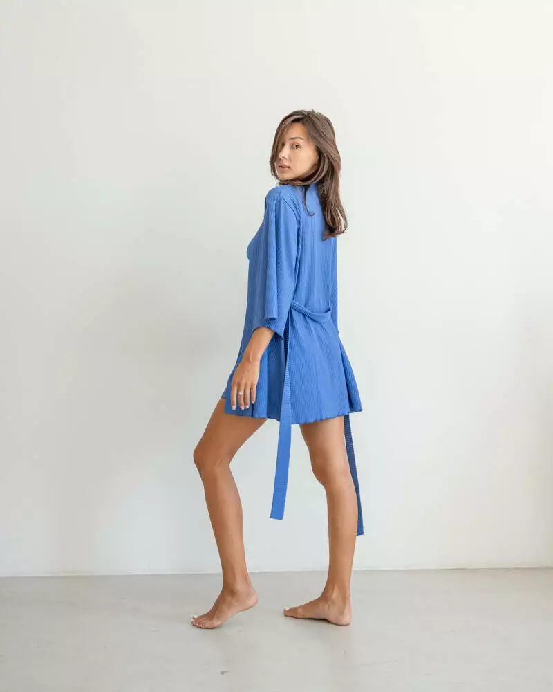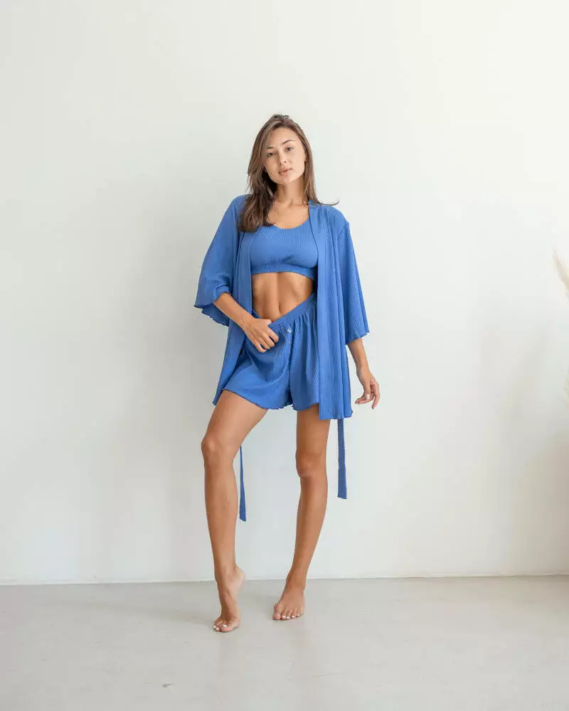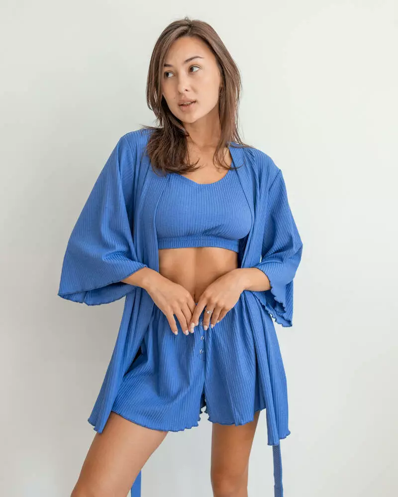 Піжамний костюм трійка з рубчика "Dana" (халат+топ+шорти) Джинсовий