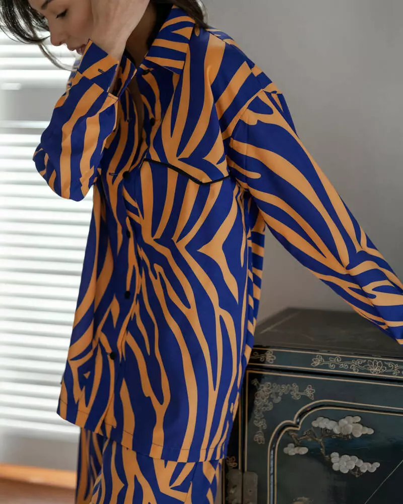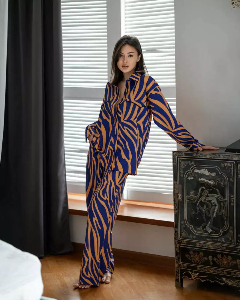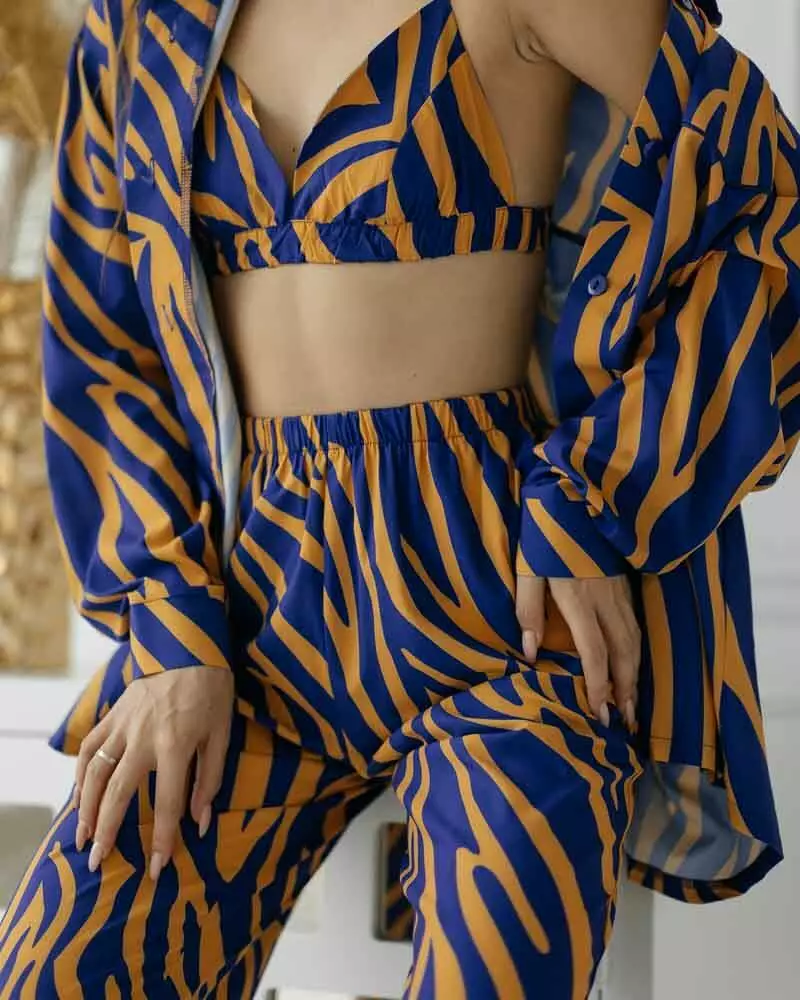 Піжамний костюм трійка "Zаra"(Сорочка+бра+штани) Помаранчево-синій