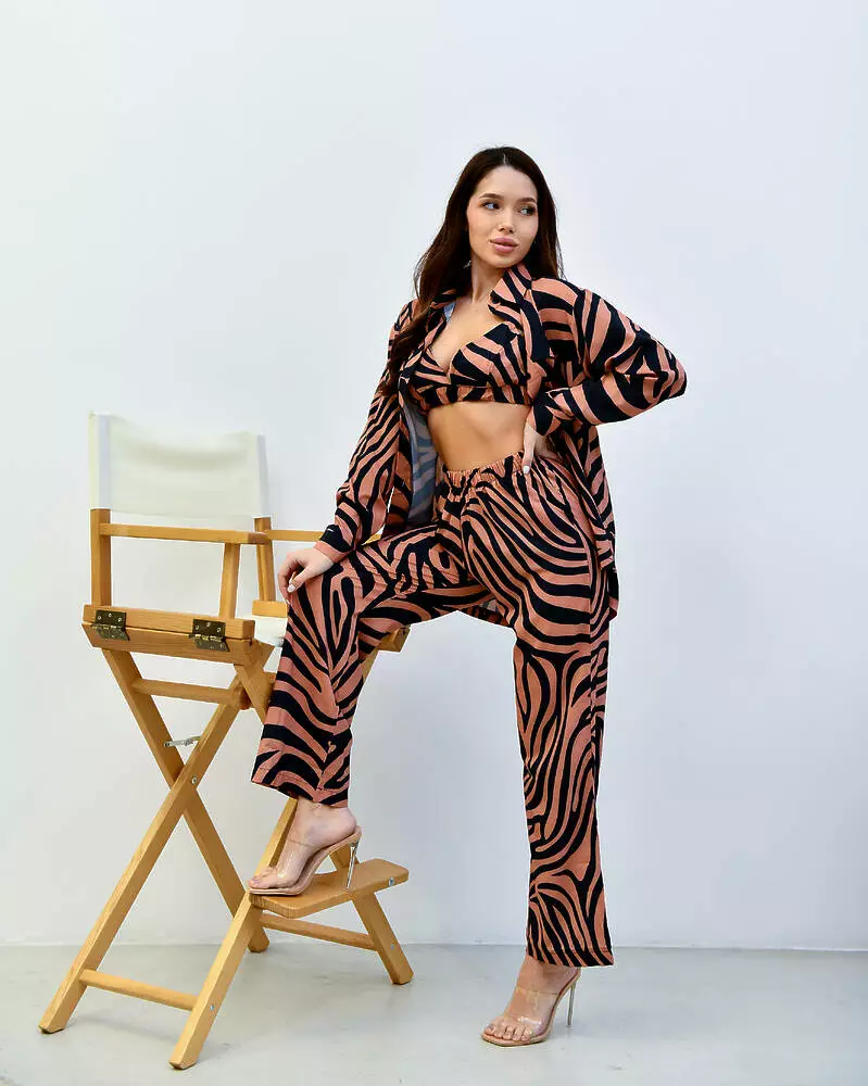 Піжамний костюм трійка "Zаra"(Сорочка+бра+штани) Пудра